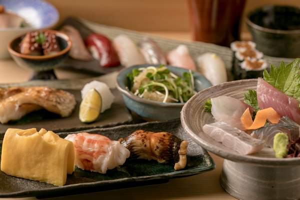 25年の修業を積んだ店主が握る本格江戸前寿司を、落ち着いた空間でご堪能ください。JR福島駅から徒歩3分、大通りから少し奥に入った静かな立地に佇む隠れ家のような寿司店です。〆もの、炊きもの、玉子焼き、ガリに至るまで、すべて店主自らが丁寧に仕込み、一貫一貫に手間と想いを込めてご提供いたします。全国各地から取り寄せた選りすぐりの地酒も10種類以上ご用意。上品で落ち着いた店内は、ゆったりとした時間を過ごしたい方に人気で、大切な方との食事やデート、接待にも最適な個室も完備しております。