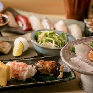 ◎前菜 岩もずく ◎蛸のやわらか煮 ◎お造り(3種) ◎小鉢 子持ち昆布 ◎タラ白子等 ◎銀ダラ西京焼き ◎すし10種(ホウボウ昆布締め、タイ、縞鯵、漬けマグロ、コハダ、剣先イカ、車海老、穴子、玉子、細巻き) ◎魚出汁の吸い物